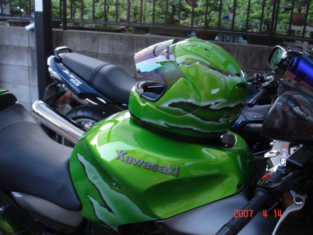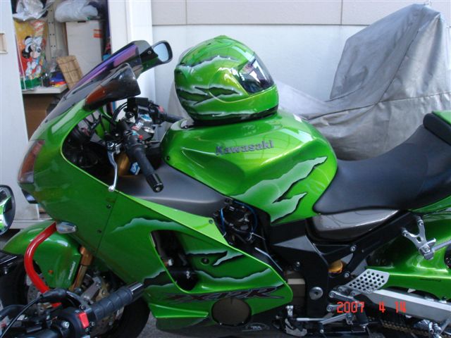 時々ご注文いただく人気メニューがバイクにヘルメットカラーを合わせてほしいというご依頼です。