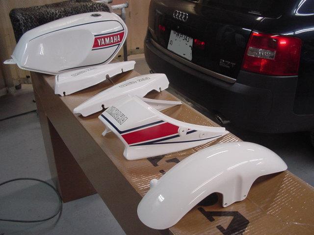 今回は、私の世代にはたまらなくなつかしのRZ250初期型カラーのタンクセットがやってきました。