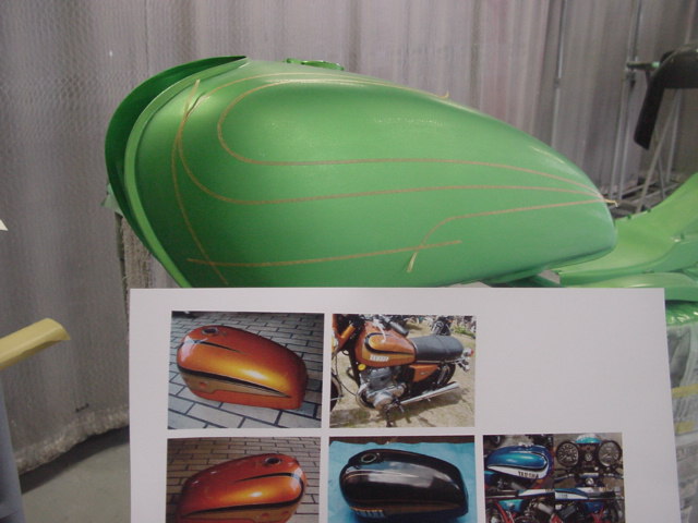 オーナー様のご要望カラー。SR400にむかしのRDカラーをアレンジして色換え。