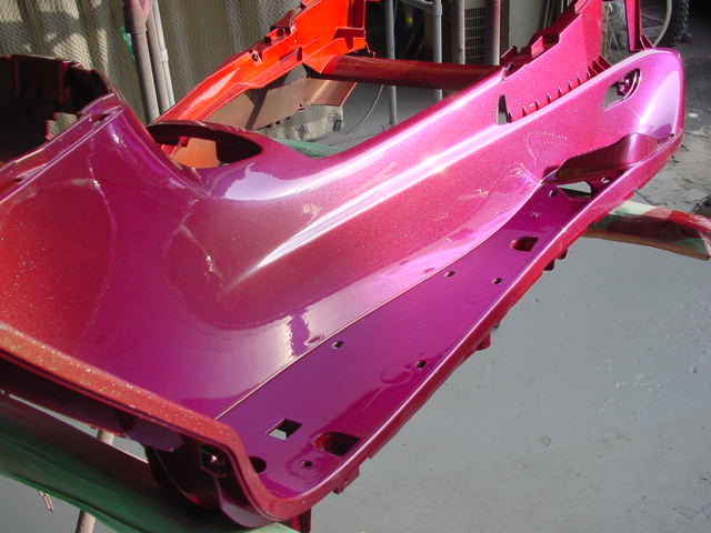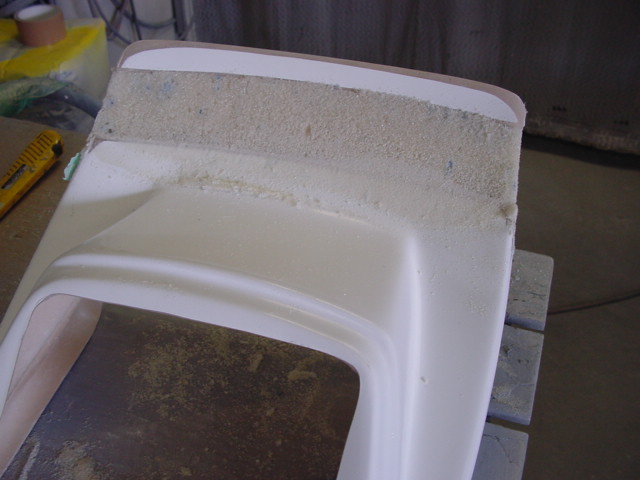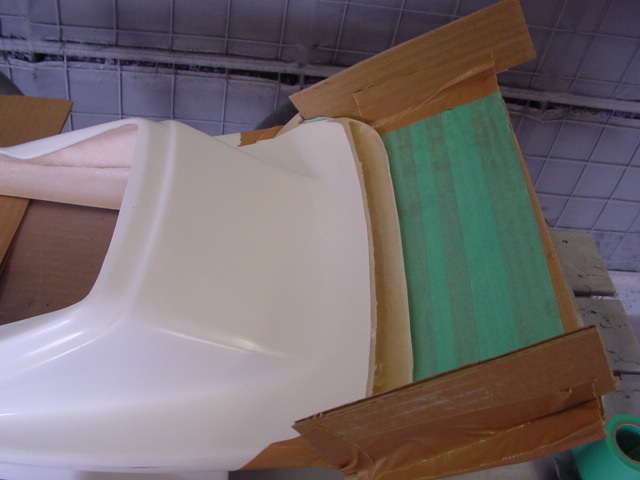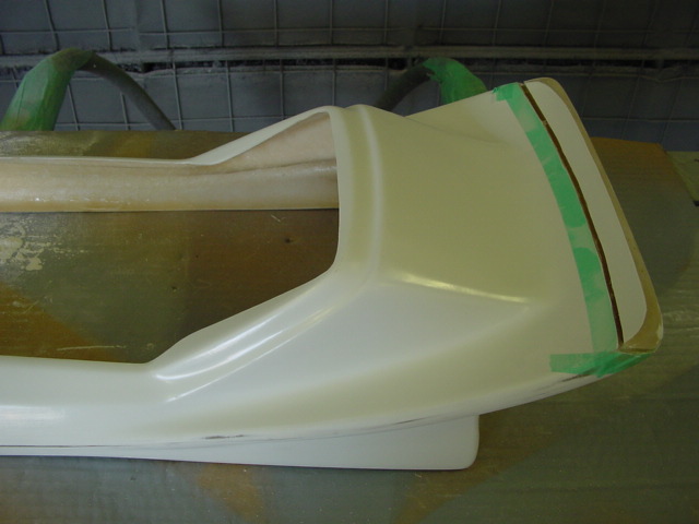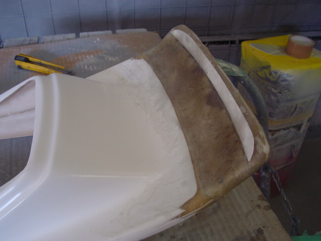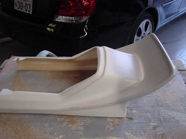 ウイング部分を延長してほしいというご要望で、エンド部分を生かすために途中部分を発泡ウレタン+FRPで延長加工。