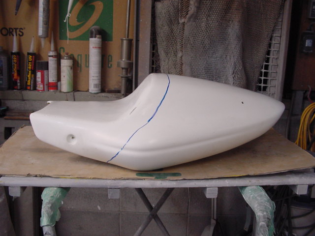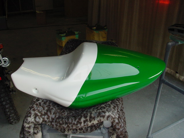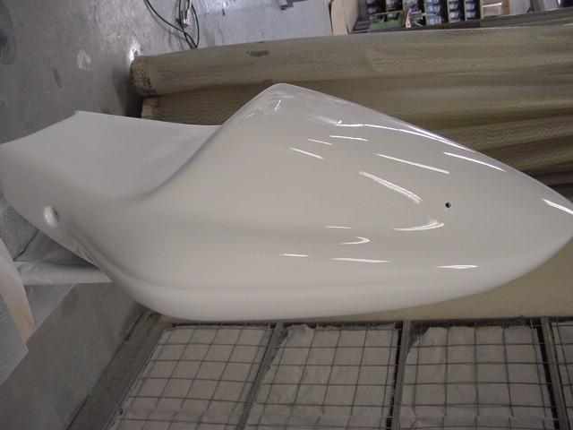 ドカティのテールカウル。FRPゲルコート仕上げの製品を