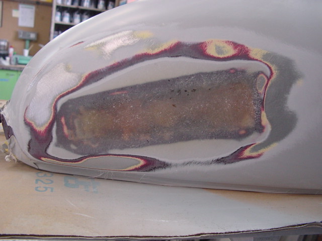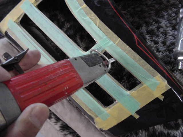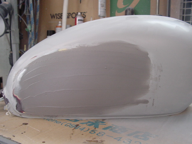 なんとかそれを外してカッコ良くいたしましょう。ステーの溶接を外してファイバーで埋めてパテ〜サフ処理