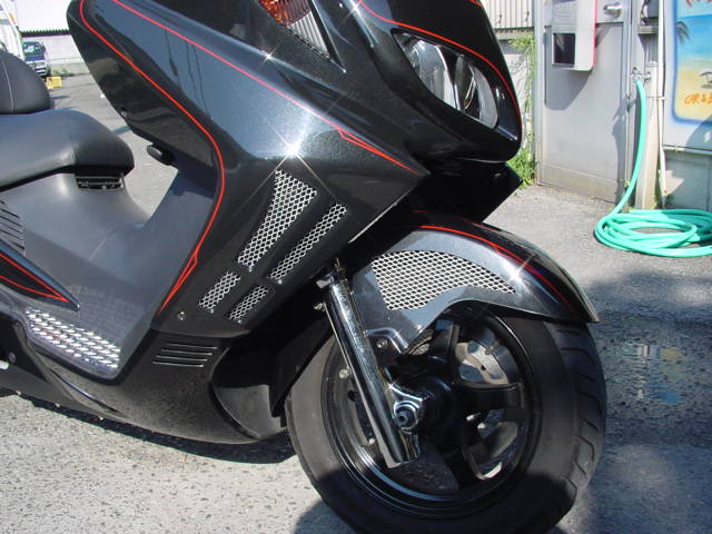 T−MAXスペシャルのフロントバイザーをスペシャルのカラーリングでペイント。