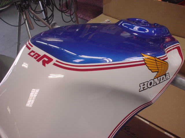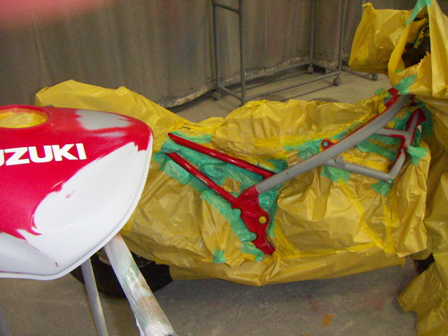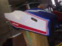 最新のアプリリアカラーにしました。カウル類はぐにゃぐにゃですので、柔軟素材ペイントです。