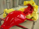 ツーリング時、砂利に取られてこけてしまったので、板金塗装でよみがえらせてあげましょう。