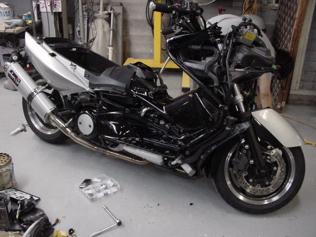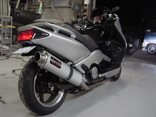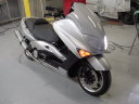 やっと新車。T-MAXキラ透明感のあるシルバーできれいにペイント。トランスクーターの表紙を飾ったマシンです。