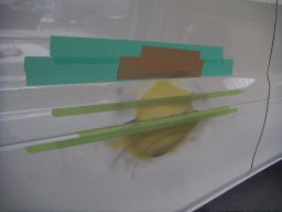 ラインをきれいに出したら、パテでさらに細かくラインだしと面だし。 |