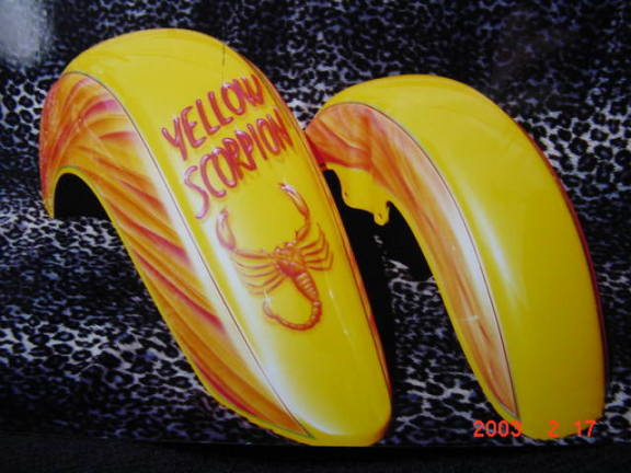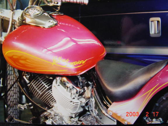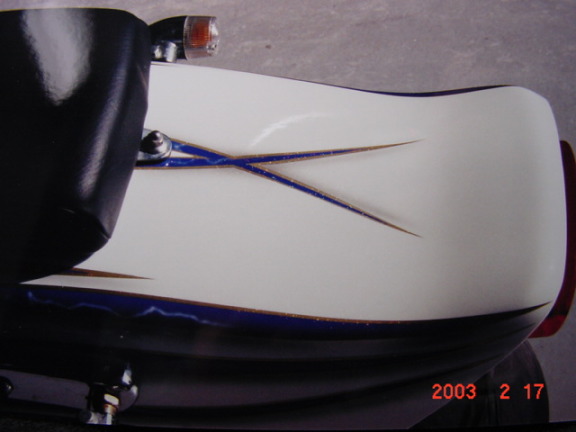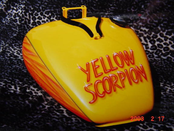 NSR80・セローの巻 一番右は純正のタンクマークを改造(足組み笑い目)