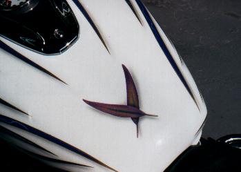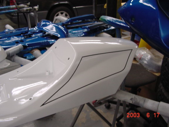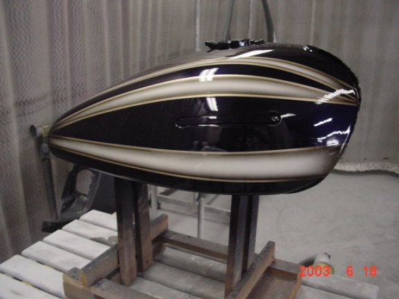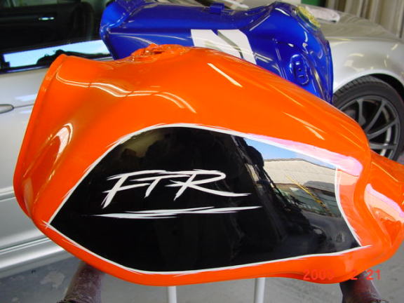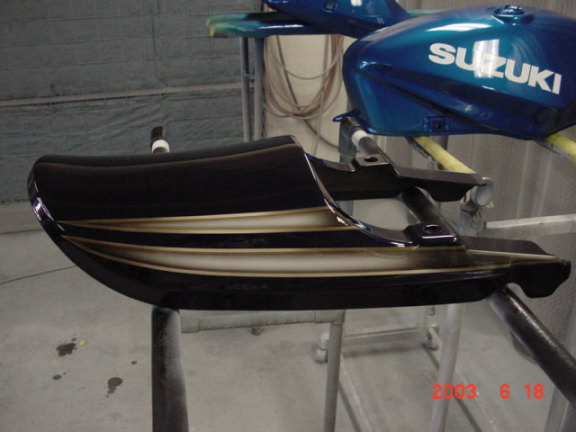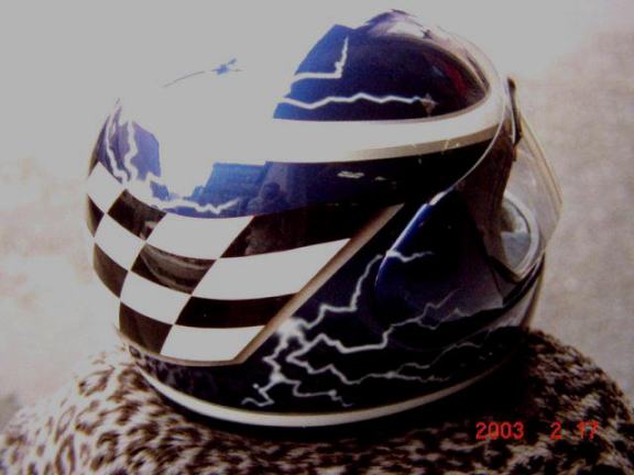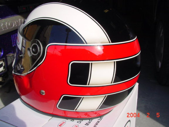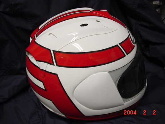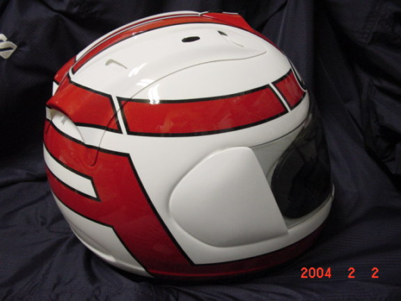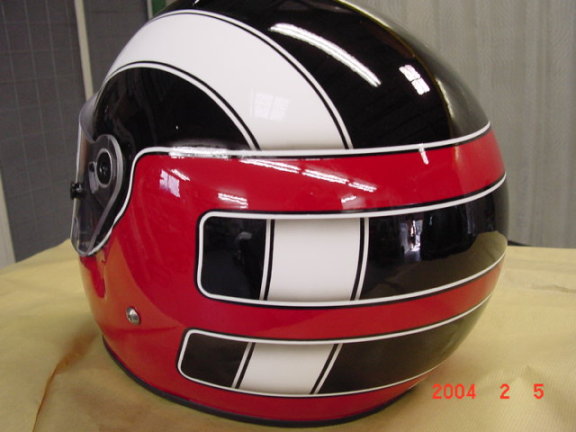 お客様デザインのヘルメットの巻 忠実に再現しライン重なりの部分にちょっとシャドウ入れてみました。