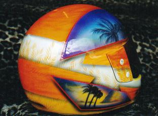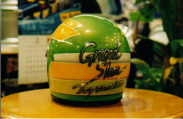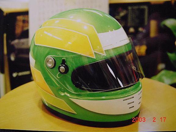 セナイメージヘルメットの巻 セナのヘルメットカラーをイメージしてお任せデザインということでした。
