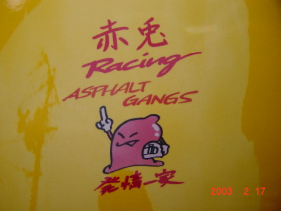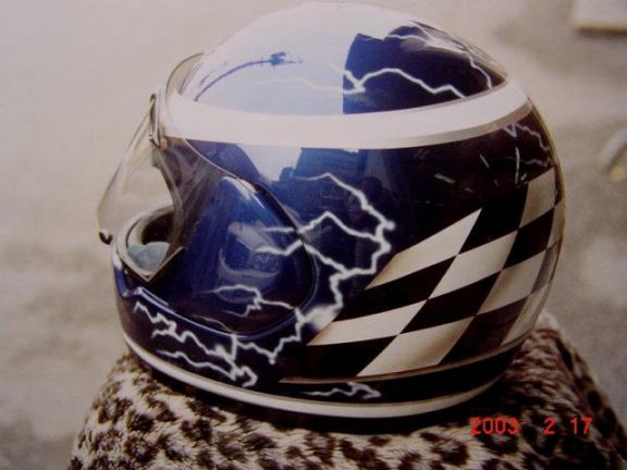 バリバリ伝説グンレプリカ グンのヘルメットを忠実にレプリカ本来SHOEIですがARAIのRR4で