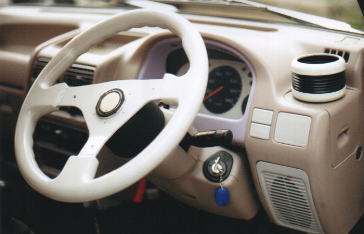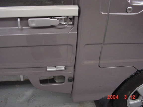 サイドドアのハンドルやヒンジもおしゃれにシルバーアクセント。ホイールルはメッキディッシュの方がいいかな〜。