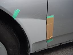 そして、残った傷やひずみをエポキシ系の柔軟パテで補修。 |