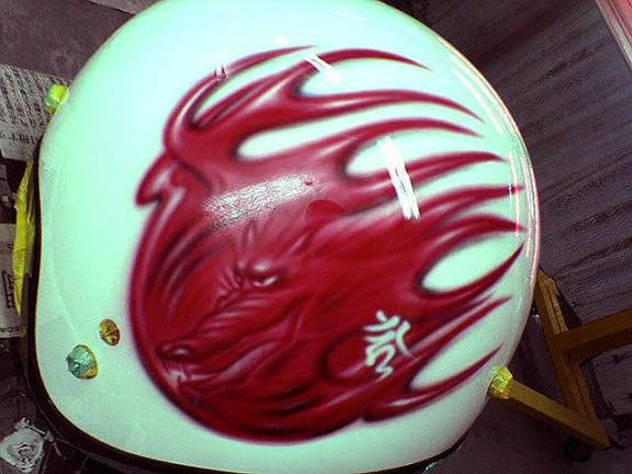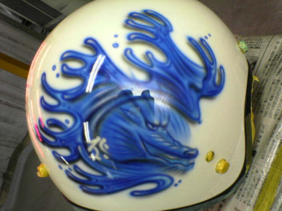 ジェットヘルメットに火と水のドラゴン