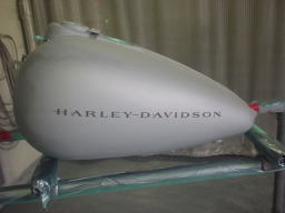 ハーレーの文字をペイント後、クリアで仕上げ。