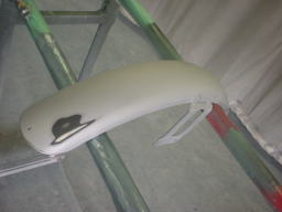 表の元穴は溶接、一度このようにパテ埋め。 |