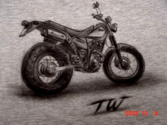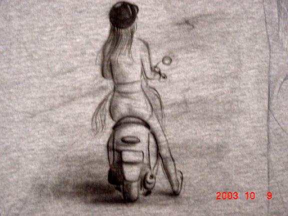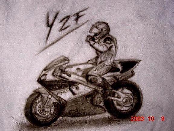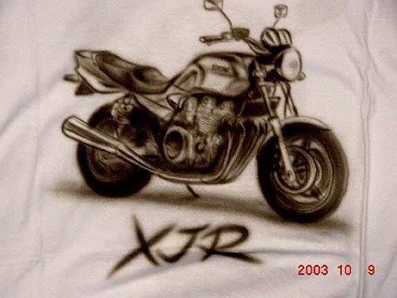 イベント用にTシャツにペイントしたバイクなど