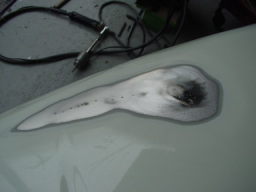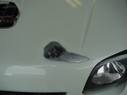ボンネットにちょっとしたヘコミ・・・と思うでしょ。 |