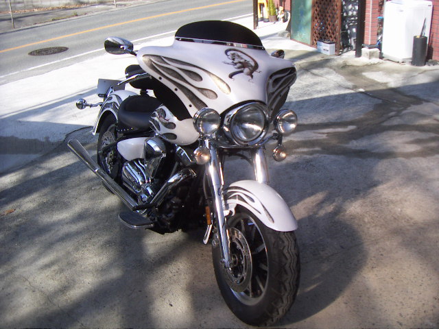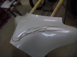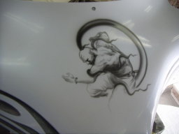 今度は、アッパーカウルにエアブラシでご依頼の絵をいれます。