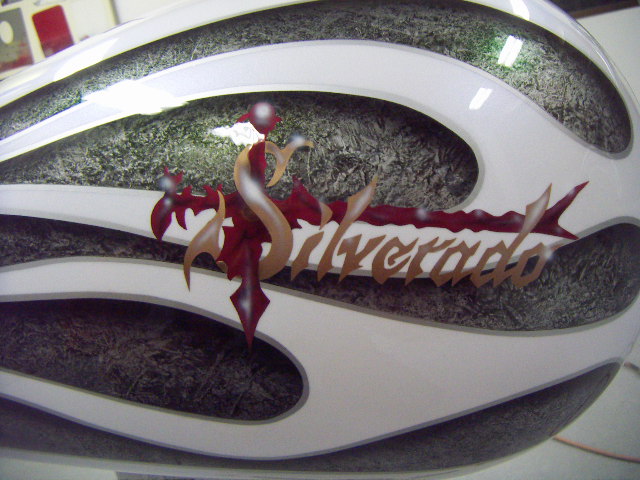 タンクの両サイドには、SLVERRADO車名のロゴを
